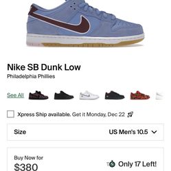 Nike SB Philadelphia Phillies Dunk Low Size 10.5$380Lincoln Acres, CA