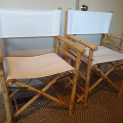 2 Bamboo Director Chairs Folding Indoor Outdoor Patio Desk Tommy Bahama Tropical Tiki Hawaiian Teak Decor Compact Foldable Furniture Ohana Frontgate $120San Diego, CA