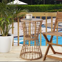 Rattan and Acacia Wood Accent Table for Indoors or Outdoors - Iron Frame - Boho Style - New in Box$60Cardiff, CA