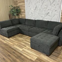 New Black Or Gray Chenille 5-Piece Sectional Set LAF Loveseat W/USB Ports + RAF Loveseat W/ Chaise + Corner Wedge + Armless Chair + Cocktail Ottoman$899San Diego, CA