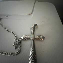 Sterling Silver Chain Necklace With Opal Stone Sterling Silver Cross $20La Mesa, CA
