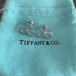 Tiffany Sterling Silver Diamond Clover Hollow Stud Earrings