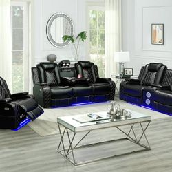 Brand New Black Bonded Leather Power Reclining 3PCs Set With LED, Bluetooth, Speakers, And Cup Holders$2,499San Diego, CA