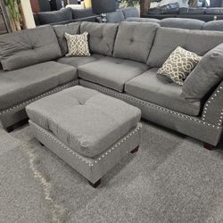 Brand New 104" x 75" Tufted Gray Linen Reversible Sectional + Ottoman With Nailhead Trimmings$799San Diego, CA