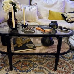 Beautiful Black Wood Coffee Table With Glass Top And Rattan Shelf$120San Diego, CA