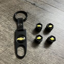 Matte Black Chevrolet Car Wheel Tire Valve Caps Stem With Keychain$10El Cajon, CA