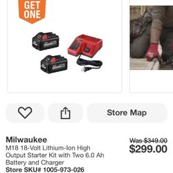 Milwaukee M18 18-Volt Lithium-lon High Output Starter Kit with Two 6.0 Ah Battery and $250San Diego, CA