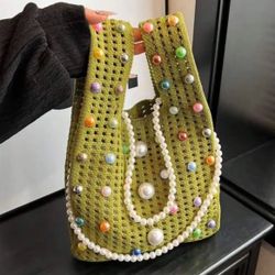 Funky Green Crochet Knit Purse, Multi Pearls & Pearl Chain$35San Diego, CA