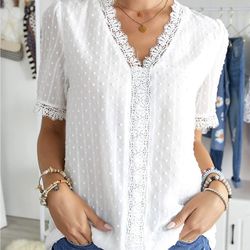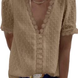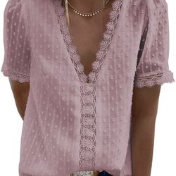 ☀️ Womens Summer Lace Tops V Neck Short Sleeve Shirts Vintage Elegant Polka Dot Blouses Tunic$5Chula Vista, CA