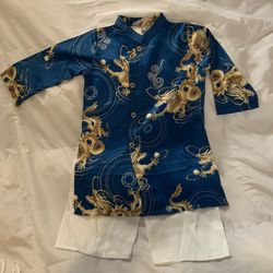 Dark Blue Green Turquoise teal Vietnamese Tunic Ao Dai Boy Size 8$25San Diego, CA