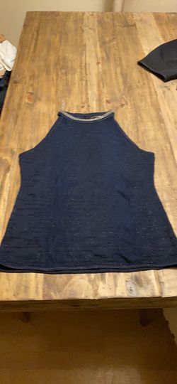 White House Black Market navy and silver metallic halter style tunic$15San Diego, CA