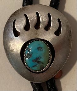 Vintage Metal Bolo Tie, Nice Silver and Blue Turquoise Stone Design, Bear Claw, Grizzly, Nature, Nice Western Design, 1 1/4" x 1", Quality, Heavy Duty$95San Diego, CA