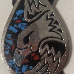 Vintage Bolo Tie Silver And Blue And Red Crushed Turquoise Eagle$85Lakeside, CA