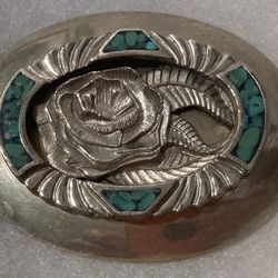 Vintage Belt Buckle Silver Rose And Crushed Turquoise Design$75Lakeside, CA