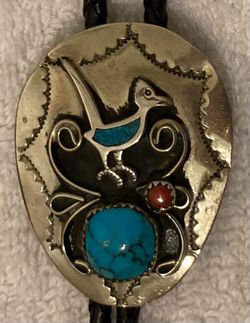 Vintage Metal Bolo Tie, Nice Silver and Turquoise Stones Design, Road Runner, Bird, Nice Western Design, 2" x 1 1/2", Quality, Heavy Duty, Country & W$75Lakeside, CA