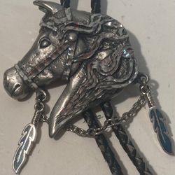 Vintage Metal Bolo Tie, Nice Diamond Cut Filigree Horse Design, Crushed Turquoise Stone Feathers, Nice Western Design, 2 3/4" x 2", Quality, Heavy Dut$75San Diego, CA