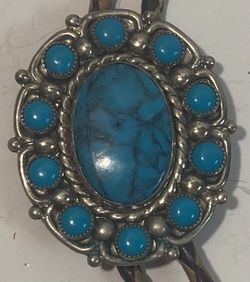Vintage Metal Bolo Tie, Nice Handcrafted Sterling Silver, Blue Turquoise Stone Design, Beautiful Design, Nice Design, 1 3/4" x 1", Nice Design, Qualit$125San Diego, CA