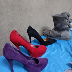 Gray w/Bows & Navy Blue Pair Uggs &3 Pairs Heels. $75San Diego, CA