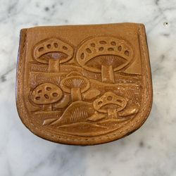 Vintage Small Tooled Leather Coin Purse Butterfly Mushrooms Rare Mid Century Collectible Wallet Purse Coin Holder Money Cash Holder $25San Diego, CA