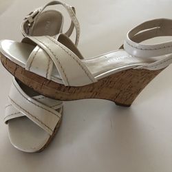 Franco Sarto Platform Cork Wedge Heels White Sandal Women Size 7.5 M$23Bonita, CA