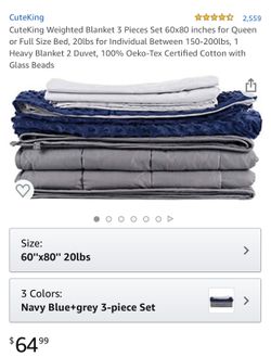 CuteKing Weighted Blanket 3 Pieces Set 60x80 inches for Queen or Full Size Bed, 20lbs for Individual Between 150-200lbs, 1 Heavy Blanket 2 Duvet, 100$60Chula Vista, CA