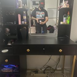 Makeup Vanity and Stool, Vanity Desk with Lights in 3 Colors, White Vanity Table with Charging Station, Visible Cabinet with Led Lights, Black$80Spring Valley, CA