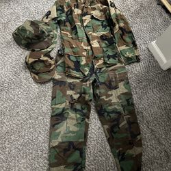 Military clothing set: camouflage combat pants/shirt/panama hat/cap size medium $35Citrus Heights, CA