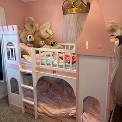 Princess castle bunkbed with mattress and book shelf$150Galt, CA