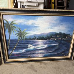 Large 44” x 32” Coastal Seascape Painting in Ornate Gold Frame – Statement Wall Art$165Roseville, CA