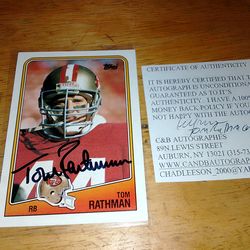 1988 Topps Rookie Card Tom Rathman #41 Autograph NFL Football 🏈 Player San Francisco 49ers Running Back$54Sacramento, CA