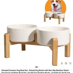 Elevated Ceramic Dog Bowl Set With Bamboo Stand $25Sacramento, CA