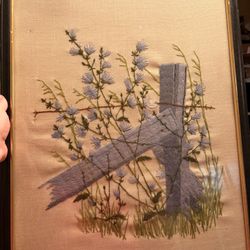 Crewel Needle Work In Blue Fence$150Sacramento, CA