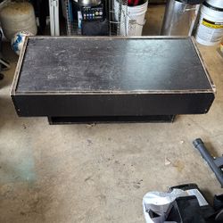 Wood end table has wheels and a drawer on one end .$10North Highlands, CA