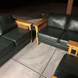 NICE LIVING ROOM SET Green Leather Mission Style COUCH- LOVESEAT&CHAIR W/ Ottoman…beautiful Hunter Green Leather- High End!! Paid $7k $1,600Fair Oaks, CA