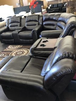 New leather reclining sofa with drop-down table$499Davis, CA