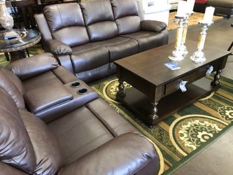 New Brown leather reclining sofa and love seat with male head accents drop down cup holder$1,649McClellan Park, CA