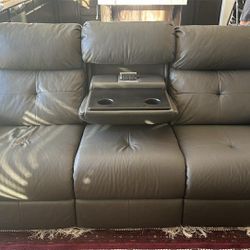 Sofa Reclinable - Cuero Negro - Porta Vasos - Entrega De Mismo Día - No Se Require Crédito $550Elverta, CA