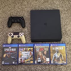 PS4 Slim 500GB + 2 Controllers + GTA V + Spider-Man + 2 WWE Games$200Rancho Cordova, CA