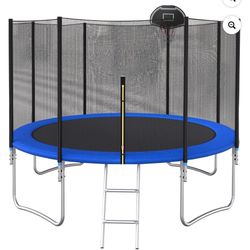 Trampolín de 12 Pies con Red de Seguridad y Aro de Baloncesto para Recreación Al Aire Libre y Diversión para Niños Pequeñosnew $200Anaheim, CA