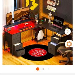 66.1 in. Distressed Black L Shaped Desk with File Drawer, Power Outlet and LED Light, Monitor Shelf$108Fullerton, CA