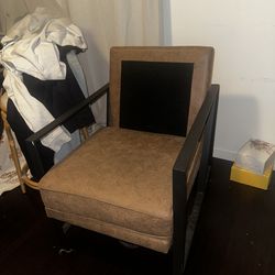 Brown leather desk chair with armrest$40Rancho Cucamonga, CA