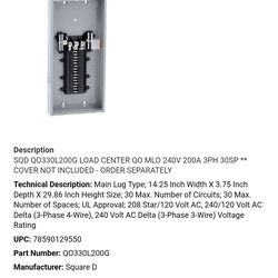 SQD QO330L200G new not cover $150$150Rialto, CA