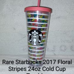 Rare Starbucks 2017 Floral Stripes 24oz Cold Cup Tumbler$10Riverside, CA