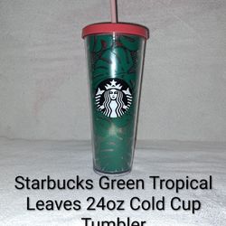 New Starbucks Green Tropical Leaves 24oz Cold Cup Tumbler$15Riverside, CA