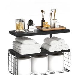 Floating shelves, set of 2 with toilet paper basket, black, restroom shelves, wall shelves,$15Riverside, CA