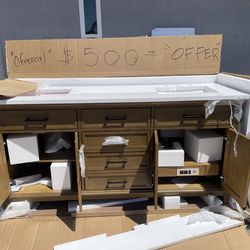 72” Grey Oak Solid Wood Bathroom Vanity with Marble Top (V83)$900Fontana, CA