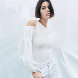 ZARA Ribbed Voluminous Balloon Long Sleeve Cut Out Bodysuit Size S$29Rosemead, CA