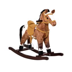 Qaba Kids Wooden Plush Ride-On Rocking Horse Chair Toy with Realistic Sounds Dark Brown/White$50Riverside County, CA