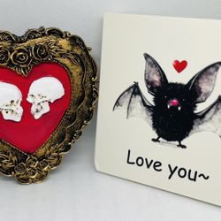 2x Goth Spooky Valentine’s Day Gift (2 pieces) Resin Heart 4.72” & Bat Table Top Decor 5” Horror Romance Decorations Gifts$25Moreno Valley, CA