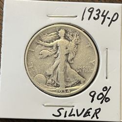 Silver 1934 P Walking Liberty Half Dollar .900 Fine Silver$39Santa Ana, CA
